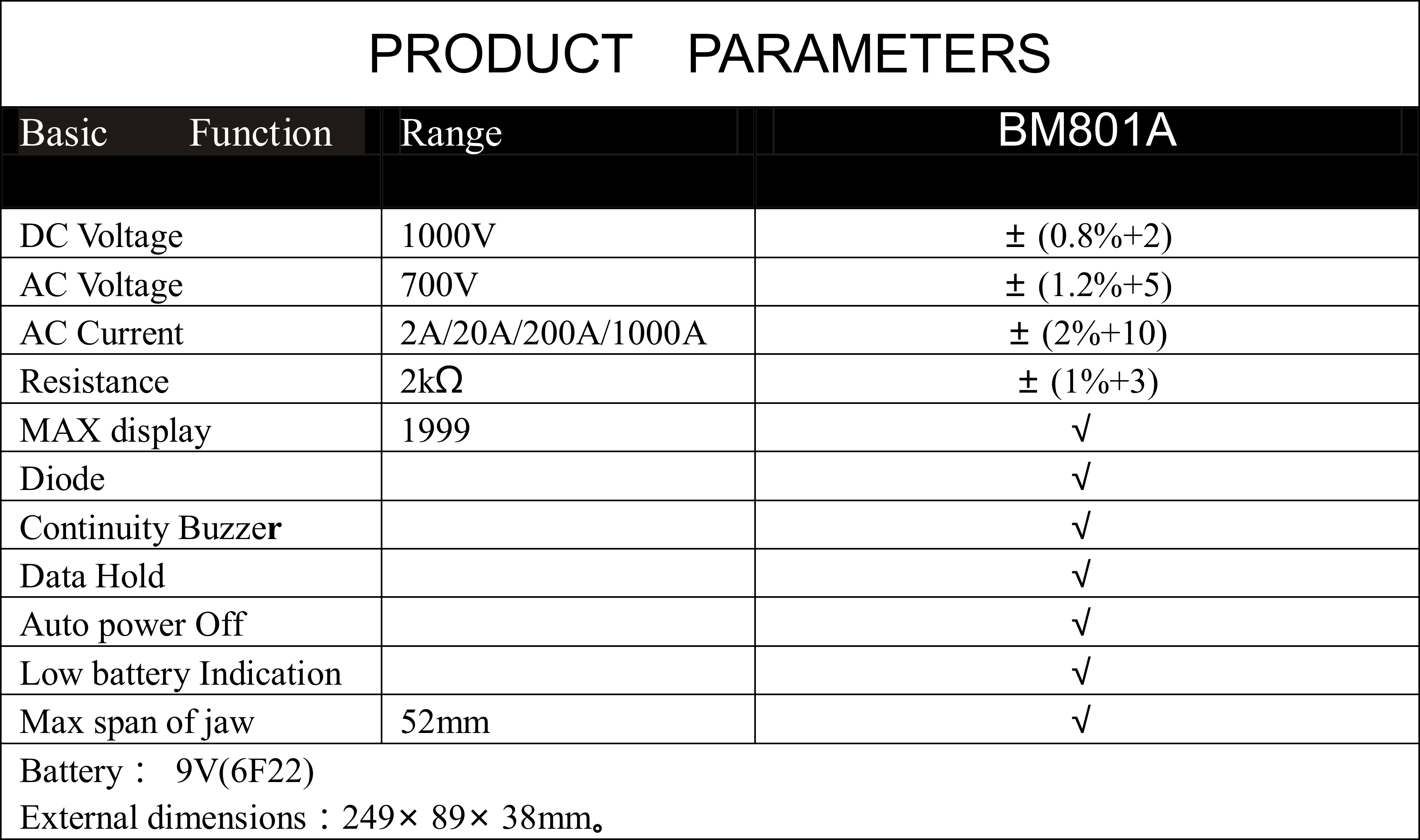 产品展示 New Arrivals Earth Resistance tester Digital Insulating Resistance Digital Clamp Meter Leakage Current Clamp Meter Digital Multimeter Thermometers Infrared Thermometer Digital Tachometers Others PRODUCTS > Digital Clamp Meter > BUY NOW Price ¥102 Download instructions BM801A AC clamp meter Back